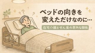 在宅介護でベッドの向きを変えたところ、せん妄が悪化。天井の見え方や景色の変化が与えた影響を体験談とともにまとめました。環境調整で気をつけたいポイントも解説します。在宅介護でベッドの向きを変えたところ、せん妄が悪化。天井の見え方や景色の変化が与えた影響を体験談とともにまとめました。環境調整で気をつけたいポイントも解説します。